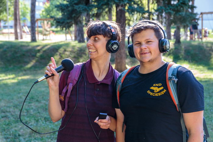 Udeleženke_ci skozi doživljajsko delavnico odkrivajo zvočni svet različnih živali. Aktivno poslušanje je spodbujeno z vprašanji, nadgrajeno pa s podajanjem novih informacij preko zanimivih, aktivacijskih nalog. Tekom delavnice udeleženke_ci spoznavajo razlike med zvočno komunikacijo in zvočno ustvarjalnostjo različnih živalskih vrst ter se sprašujejo o tem, kaj živali sporočajo, zakaj komunicirajo in kdaj lahko njihove zvoke razumemo kot izraz zvočne ustvarjalnosti. Se lahko tudi ljudje sporazumevamo z drugimi živalmi preko zvoka? Lahko z njimi ustvarjamo zvočno umetnost? Udeleženke_ci delavnice spoznajo pionirje s področij medvrstne komunikacije in medvrstne umetnosti – kako je Jim Nollman kitom igral blues in kaj je skozi desetletja snemanja in poslušanja istih habitatov ugotovil Bernie Krause, začetnik zvočne ekologije. Udeleženke_ci so spodbujene_i k razmišljanju o živalih kot posameznicah_kih ter prevpraševanju ustaljenih načinov mišljenja o njihovem življenju, socialnih stikih in ustvarjanju.